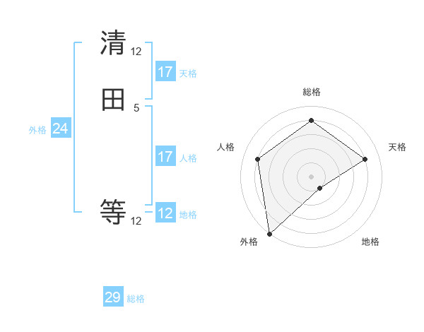 清田 等さんの天格は17画の4点!