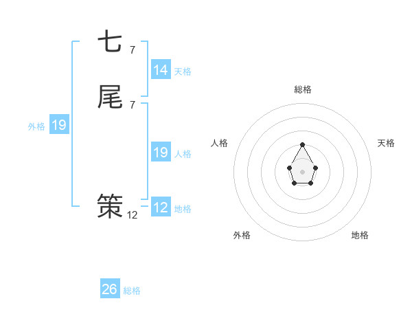 七尾 策さんの総格は26画の2点!