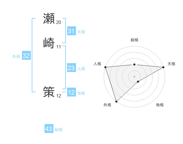 瀬崎 策さんの天格は31画の5点!