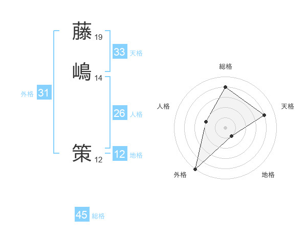 藤嶋 策さんを姓名の画数から五運を鑑定