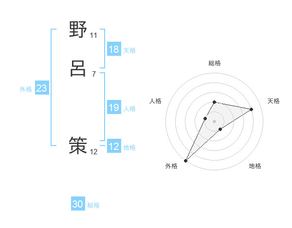 野呂 策さんの外格は23画の5点!
