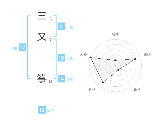 三又 筝さんの天格は5画の4点!
