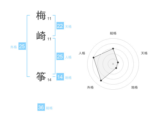 梅崎 筝さんの外格は25画の4点!