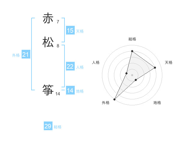 赤松 筝さんの総格は29画の4点!
