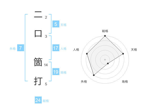 二口 箇打さんを姓名の画数から五運を鑑定