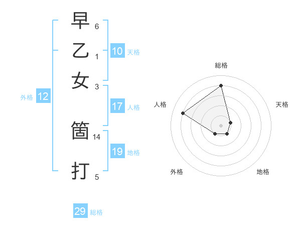 早乙女 箇打さんを姓名の画数から五運を鑑定