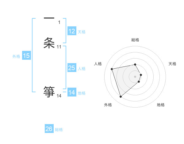 一条 箏さんの天格は12画の1点!
