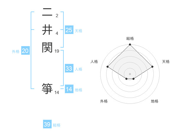 二井関 箏さんの総格は39画の5点!