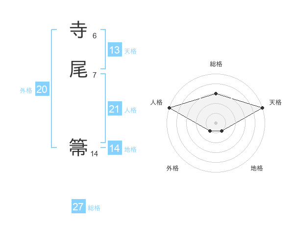 寺尾 箒さんを姓名の画数から五運を鑑定