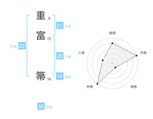 重富 箒さんの総格は35画の4点!