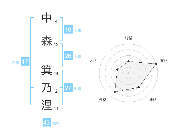 中森 箕乃浬さんを姓名の画数から五運を鑑定