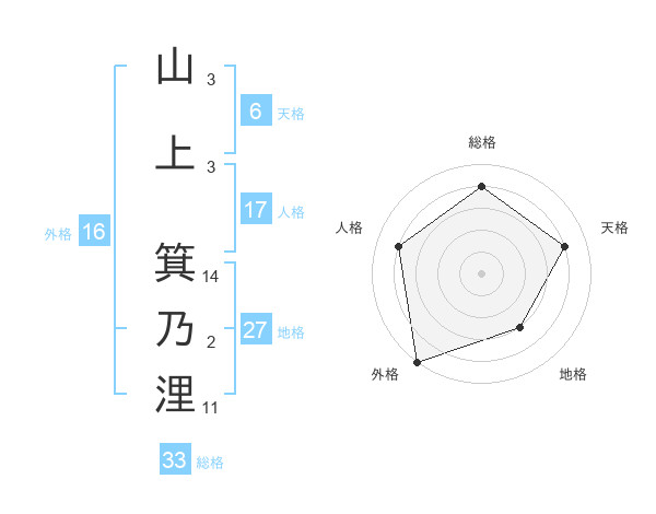 山上 箕乃浬さんを姓名の画数から五運を鑑定