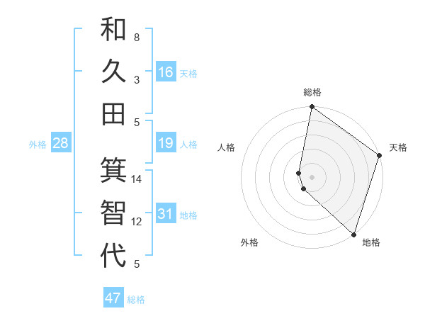 和久田 箕智代さんを姓名の画数から五運を鑑定