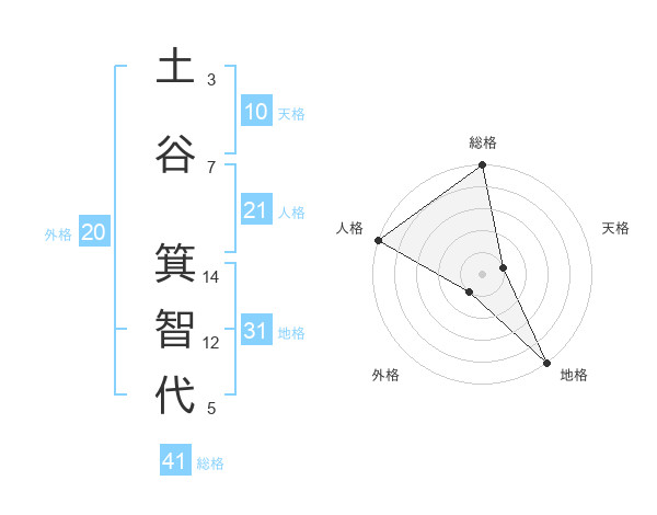 土谷 箕智代さんを姓名の画数から五運を鑑定