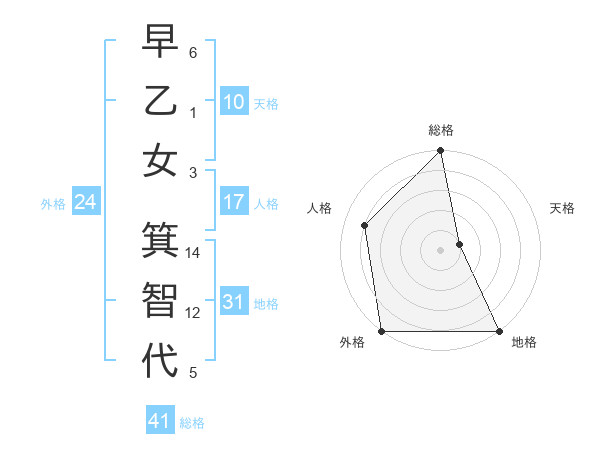 早乙女 箕智代さんの総格は41画の5点