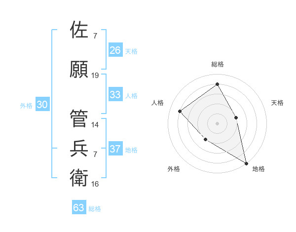 佐願 管兵衛さんを姓名の画数から五運を鑑定
