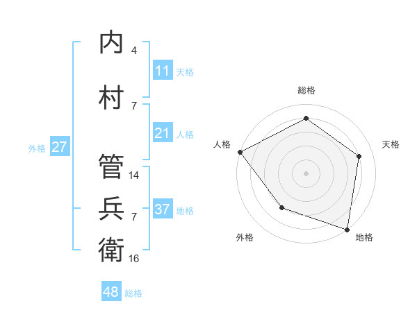 内村 管兵衛さんの総格は48画の4点!
