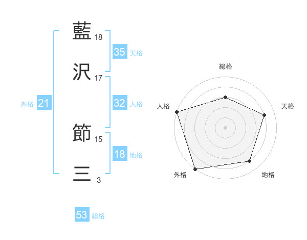 藍沢 節三さんの総格は53画の3点!