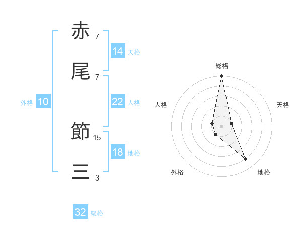 赤尾 節三さんを姓名の画数から五運を鑑定