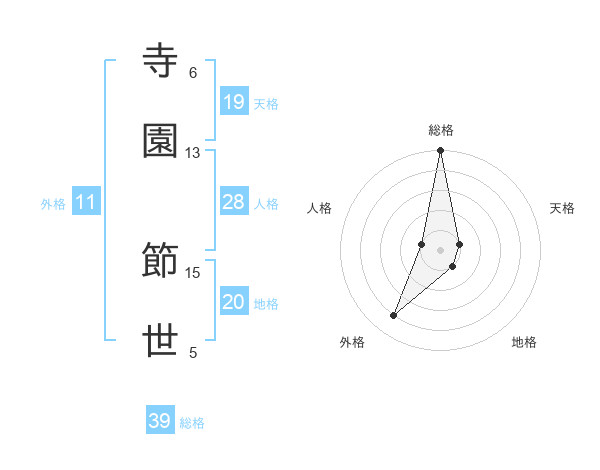 寺園 節世さんの天格は19画の1点!
