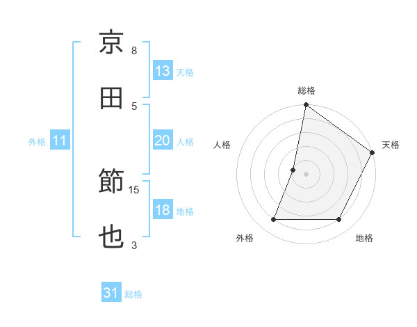 京田 節也さんの総格は31画の5点!
