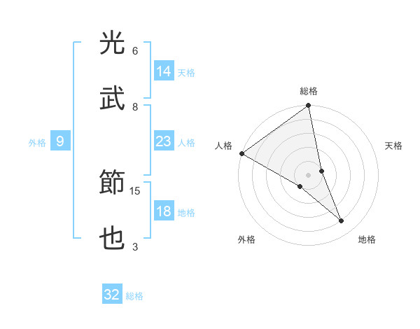 光武 節也さんの総格は32画の5点!