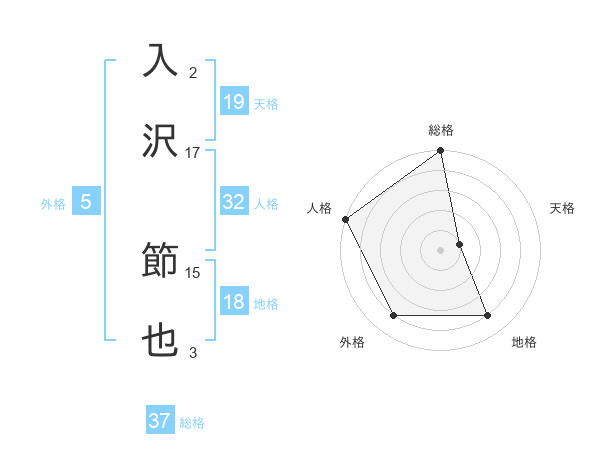 入沢 節也さんの総格は37画の5点!