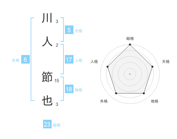 川人 節也さんの天格は5画の4点!