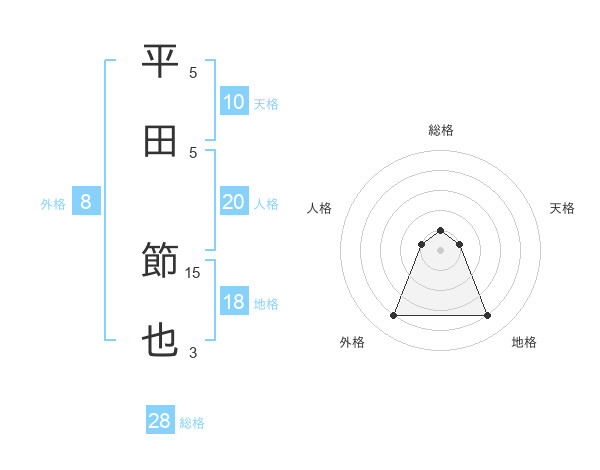 平田 節也さんの総格は28画の1点!