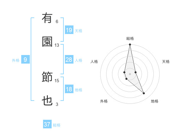 有園 節也さんの総格は37画の5点!