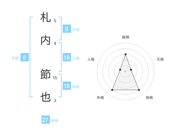 札内 節也さんの総格は27画の3点!