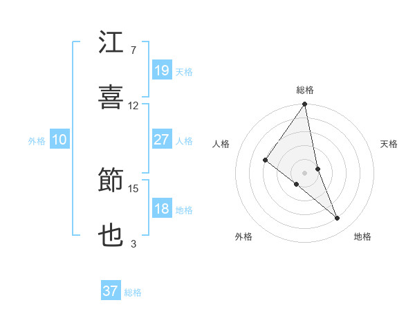 江喜 節也さんの総格は37画の5点!