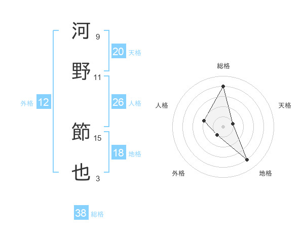 河野 節也さんの総格は38画の4点!