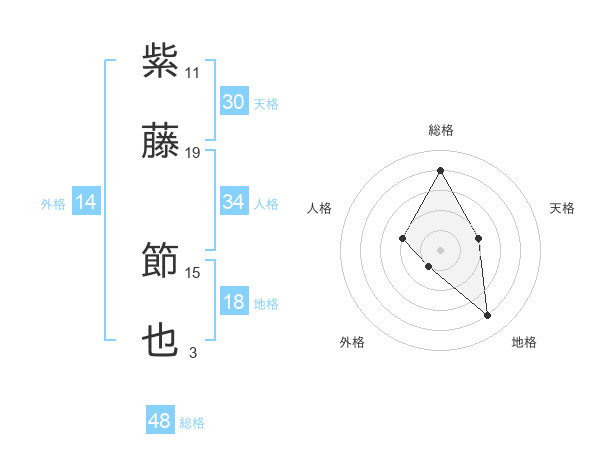 紫藤 節也さんを姓名の画数から五運を鑑定