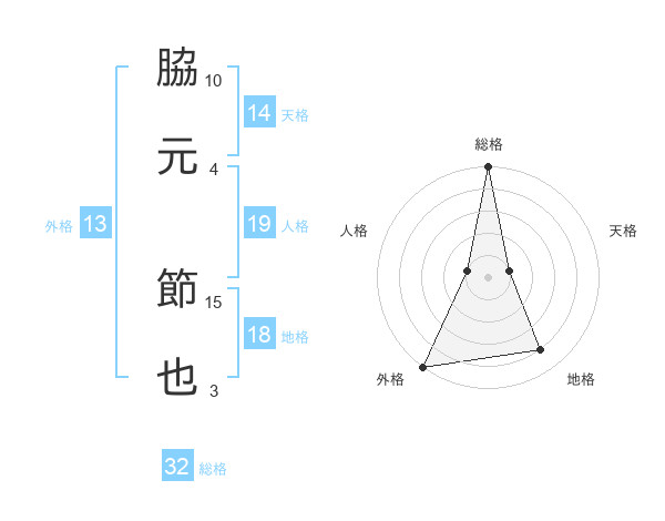 脇元 節也さんの総格は32画の5点!