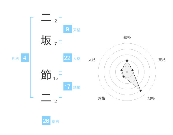 二坂 節二さんの総格は26画の2点!