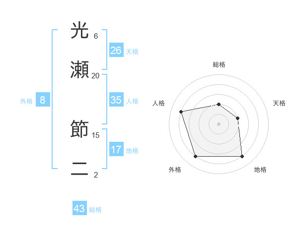 光瀬 節二さんを姓名の画数から五運を鑑定