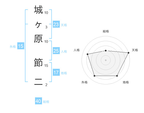 城ヶ原 節二さんの外格は15画の4点!