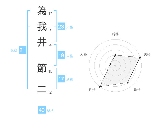 為我井 節二さんの天格は23画の5点!