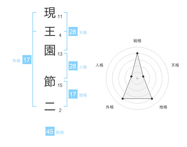 現王園 節二さんの天格は28画の1点!