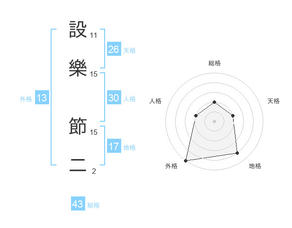 設樂 節二さんの外格は13画の5点!