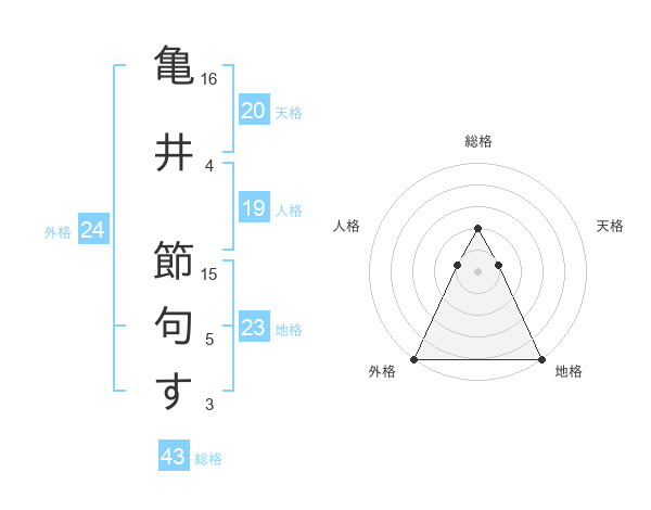 亀井 節句すさんを姓名の画数から五運を鑑定