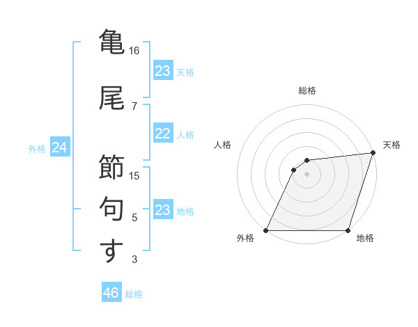 亀尾 節句すさんを姓名の画数から五運を鑑定