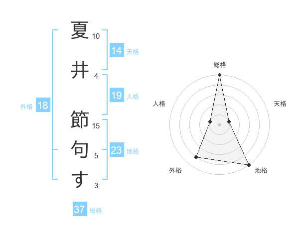 夏井 節句すさんの総格は37画の5点!