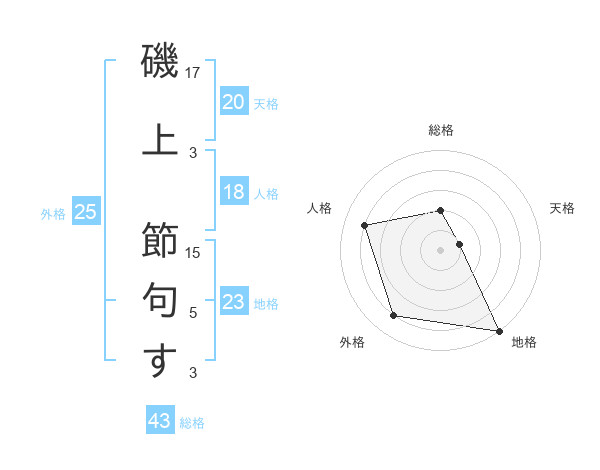 磯上 節句すさんを姓名の画数から五運を鑑定