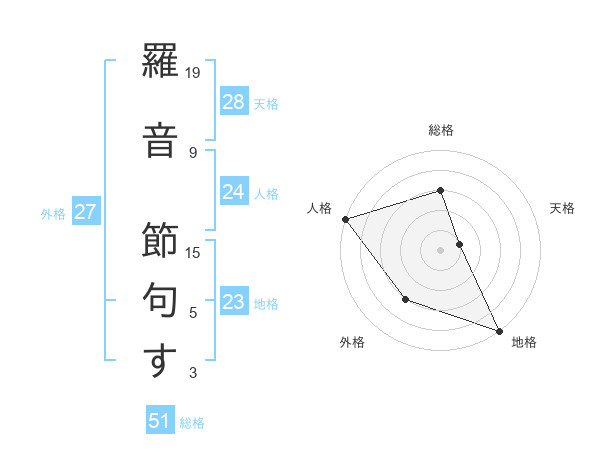 羅音 節句すさんの総格は51画の3点!