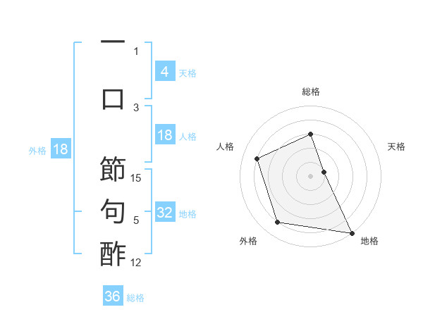 一口 節句酢さんの総格は36画の3点!