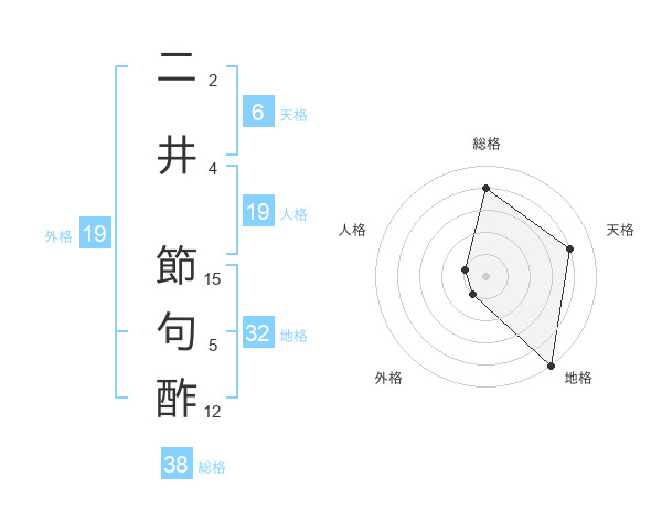二井 節句酢さんの総格は38画の4点!
