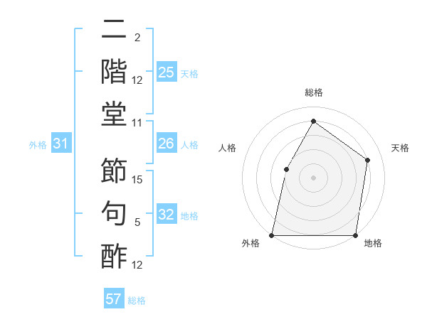 二階堂 節句酢さんを姓名の画数から五運を鑑定