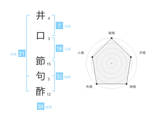 井口 節句酢さんを姓名の画数から五運を鑑定
